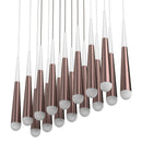Install 112 watts 16-Light chandelier hanging suspension light fixture which renders a warm color temperature of 3000 kelvins. The total lumens rendered by these lights is 5600 lumens, which roughly translates to gross lumen efficacy of around 50 lumens per watt. The lumen intensity of this fixture can be brought up and down with the usage of a dimmer. The fixtures have a brushed brown finish to it which also adds to the aesthetics of the place where it is installed.
