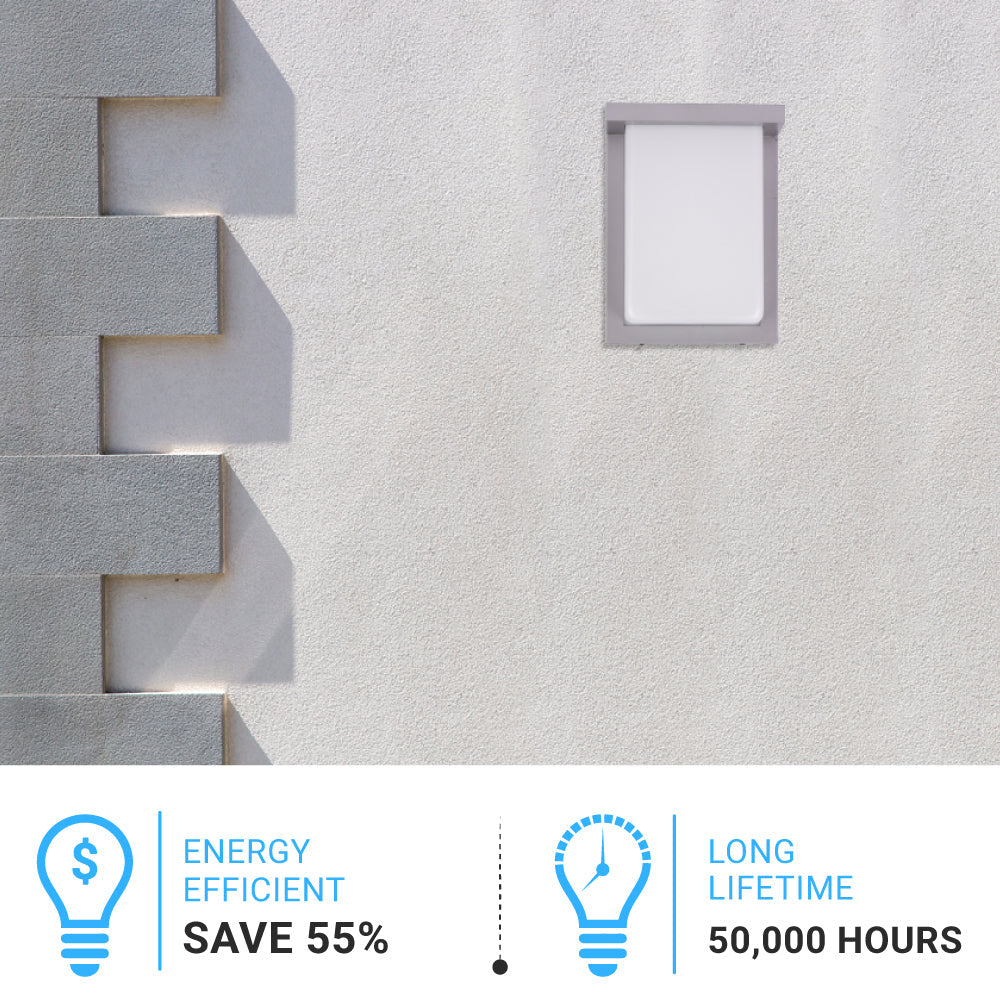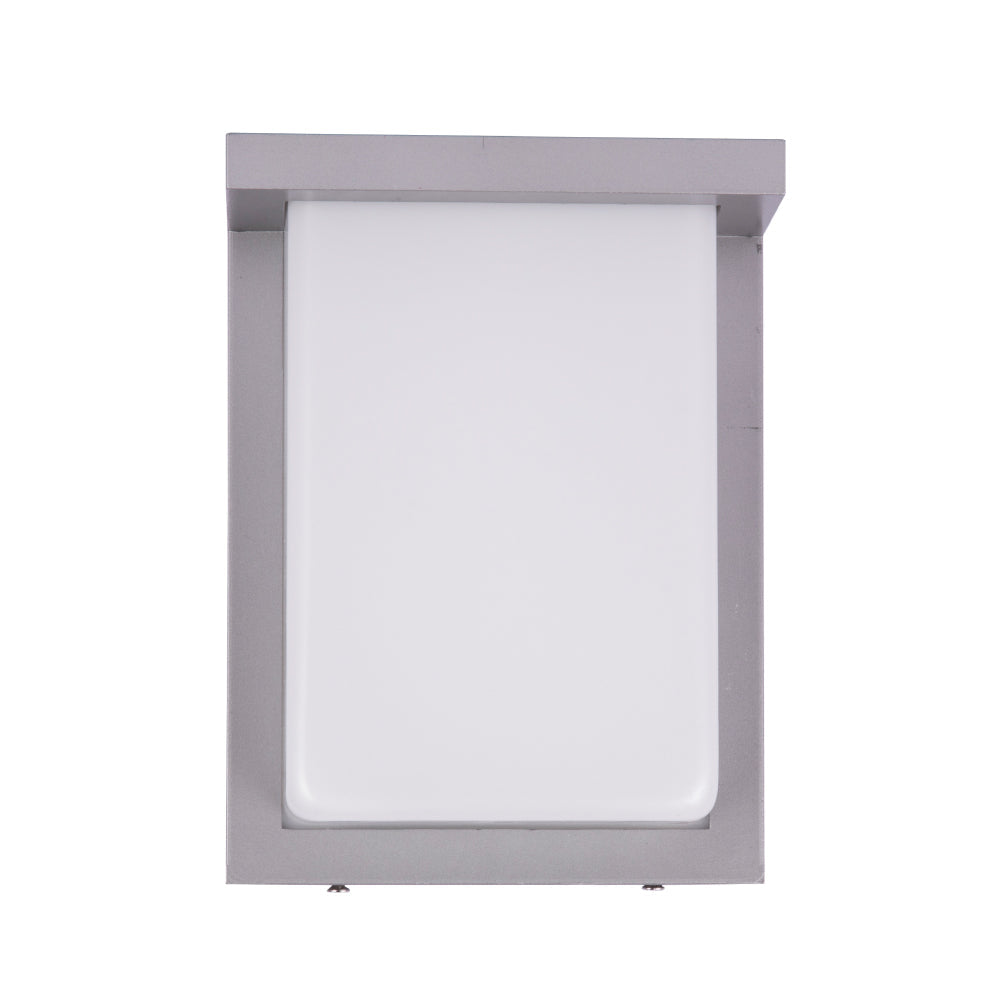 12W Rectangle Shape LED Outdoor Wall Sconce, Painted Silver Finish, White Acrylic Shade, ETL Listed