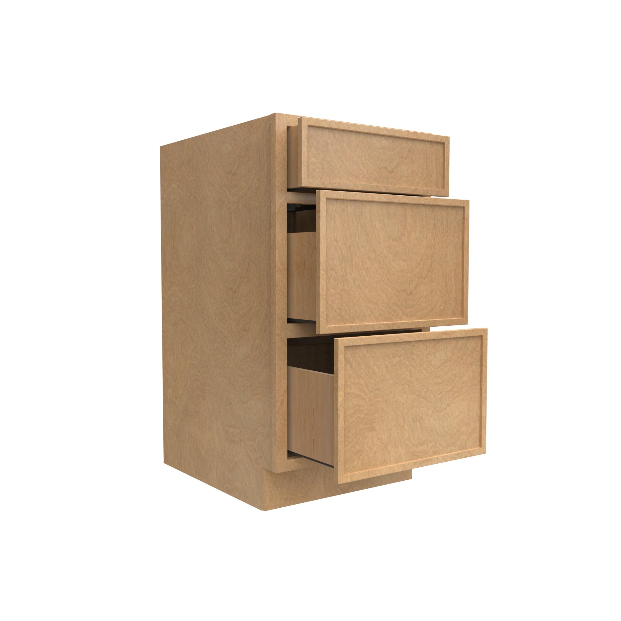 RTA - Slim Shaker Karamel - Three Drawer Base Cabinet - 18"W x 34.5"H x 24"D