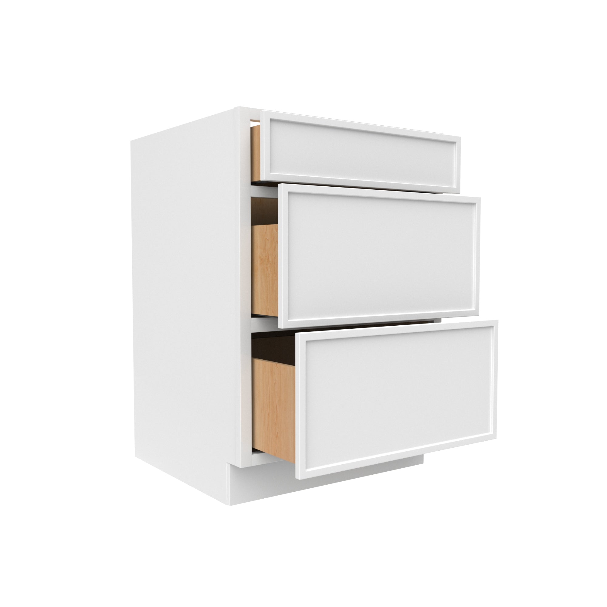 RTA - Slim Shaker Oatmeal - Three Drawer Base Cabinets - 24"W x 34.5"H x 24"D