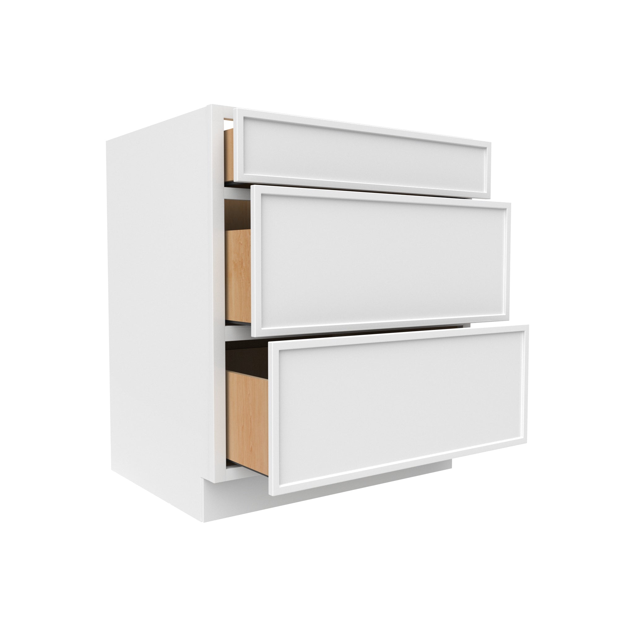 RTA - Slim Shaker Oatmeal - Three Drawer Base Cabinets - 30"W x 34.5"H x 24"D