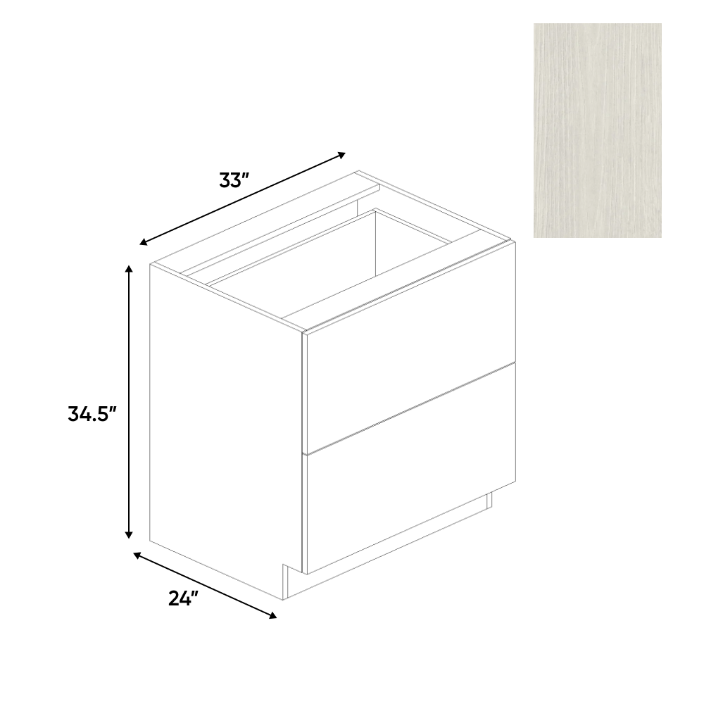 RTA - White Frozen Wood Textured - 2 Drawer Base Cabinet - 33"W x 34.5"H x 24"D - Frameless Cabinet