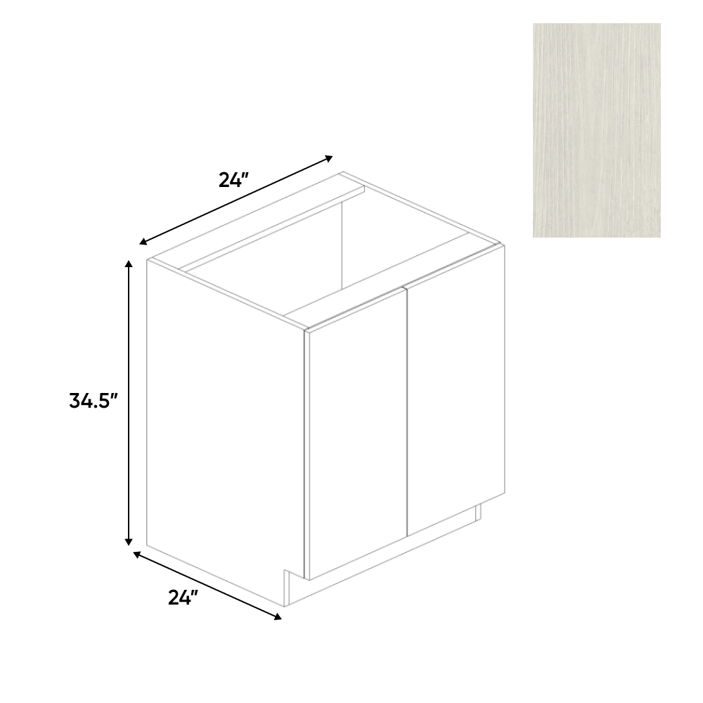 RTA - White Frozen Wood Textured - Base Full Height Cabinet - 24"W x 34.5"H x 24"D - Frameless Cabinet