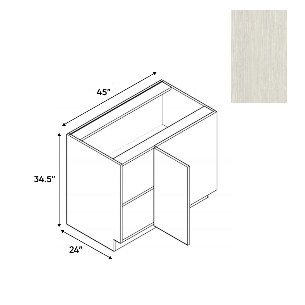 RTA - White Frozen Wood Textured - Blind Corner Base Cabinet - 45"W x 34.5"H x 24"D - Frameless Cabinet
