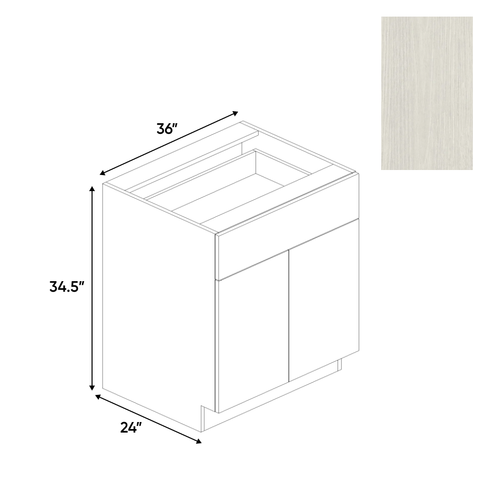 RTA - White Frozen Wood Textured - Double Door Base Cabinet - 36"W x 34.5"H x 24"D - Frameless Cabinet