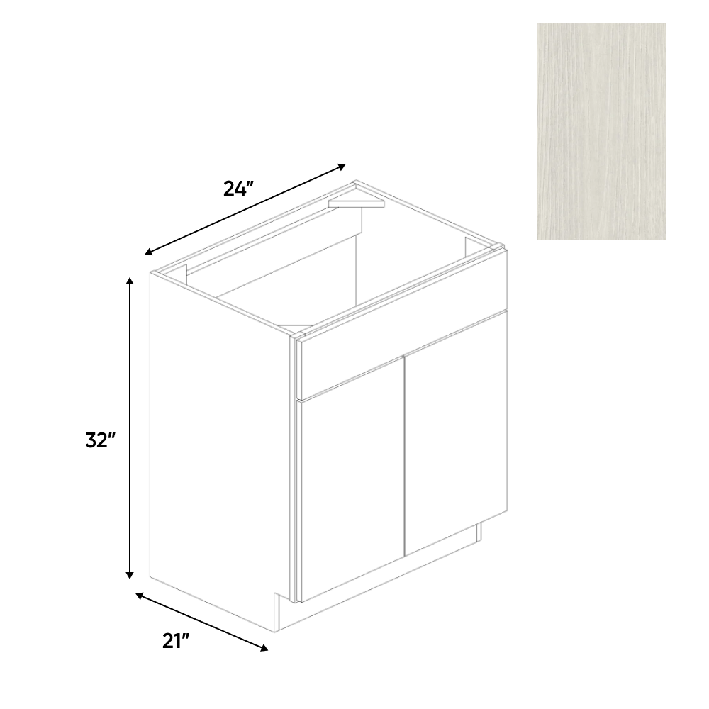 RTA - White Frozen Wood Textured - Vanity Sink Base Cabinet - 24"W x 30"H x 21"D - Frameless Cabinet