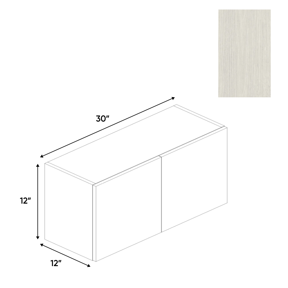RTA - White Frozen Wood Textured - Wall Cabinet - 30"W x 12"H x 12"D - Frameless Cabinet