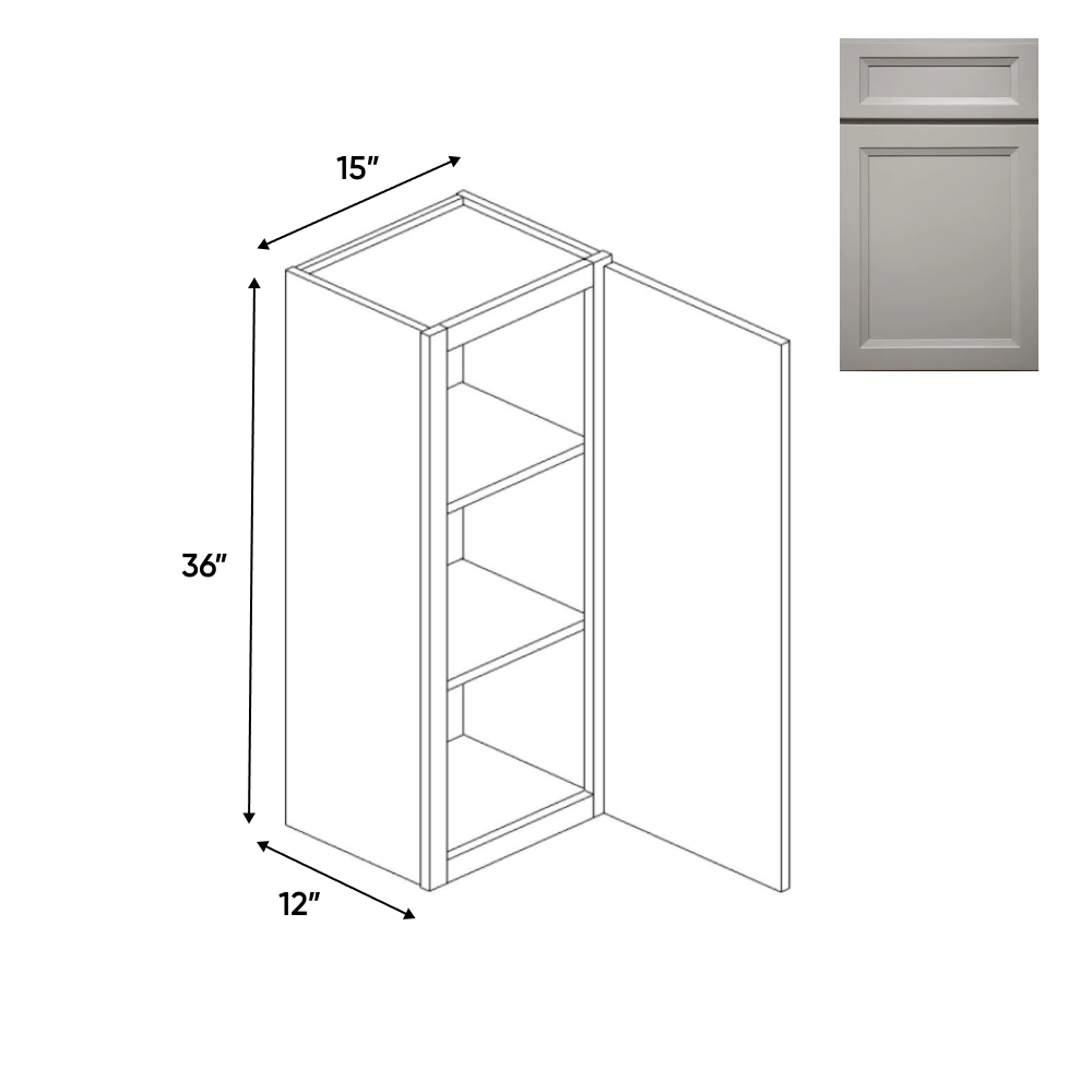 RTA - Windsor Ashen - 36"Height Single Door Wall Cabinets - 15"W x 36"H x 12"D